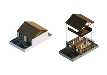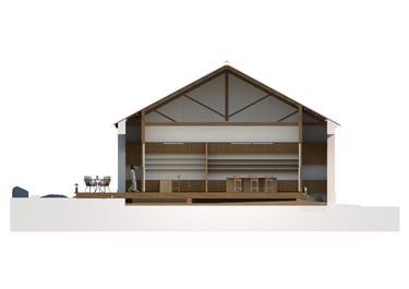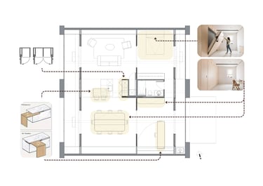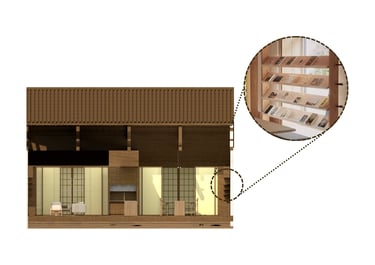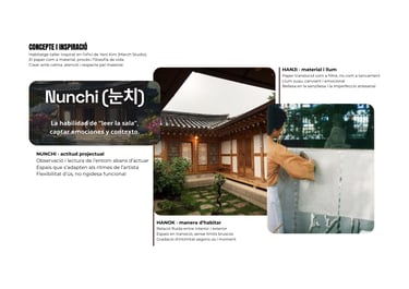 Proyecto de una vivienda-taller para una artista de papel, concebido como un espacio híbrido donde vida personal y trabajo creativo conviven en equilibrio. La propuesta se inspira en el concepto coreano nunchi, poniendo el foco en la percepción, la calma y la relación sensible entre las personas y el espacio.